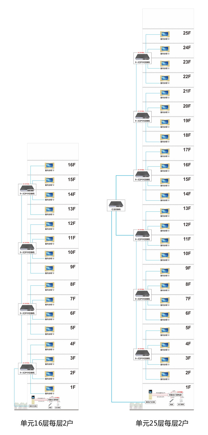 • DS-808二線制數碼非可視對講系統布線圖(樓層解碼)